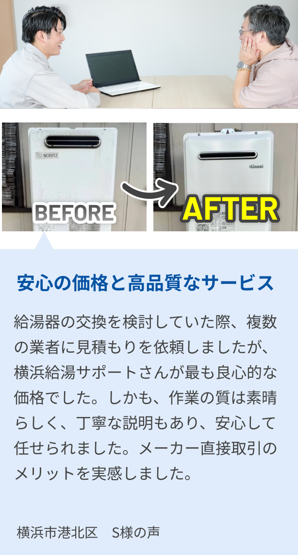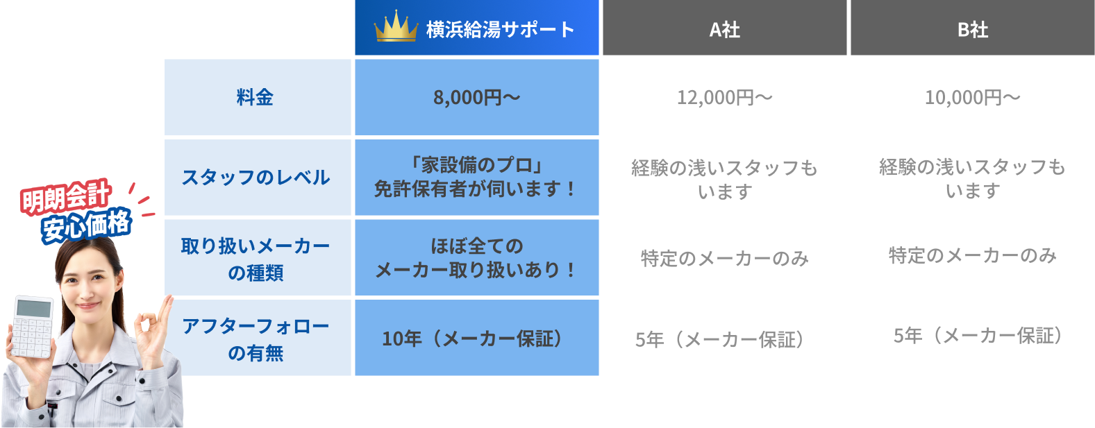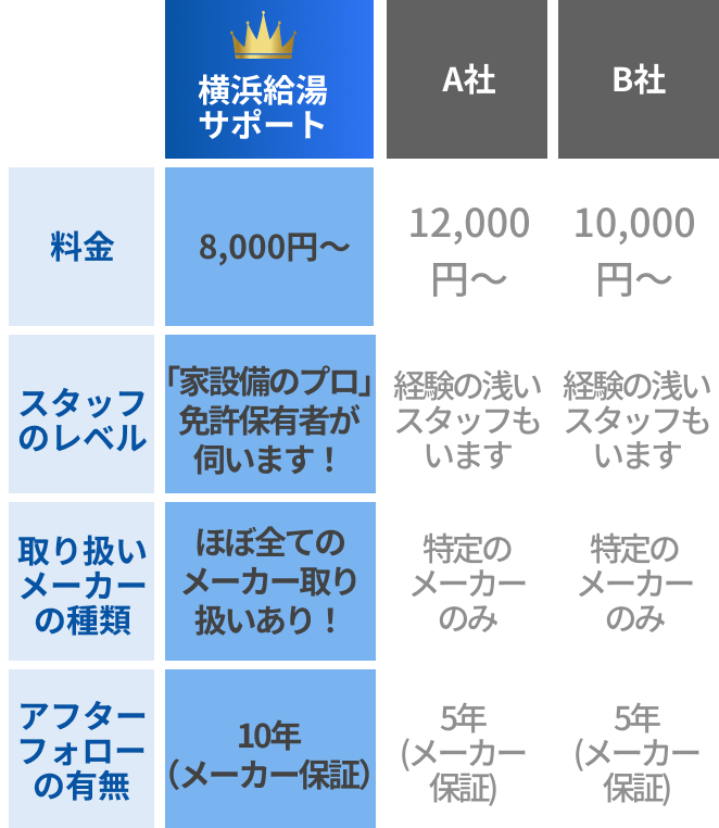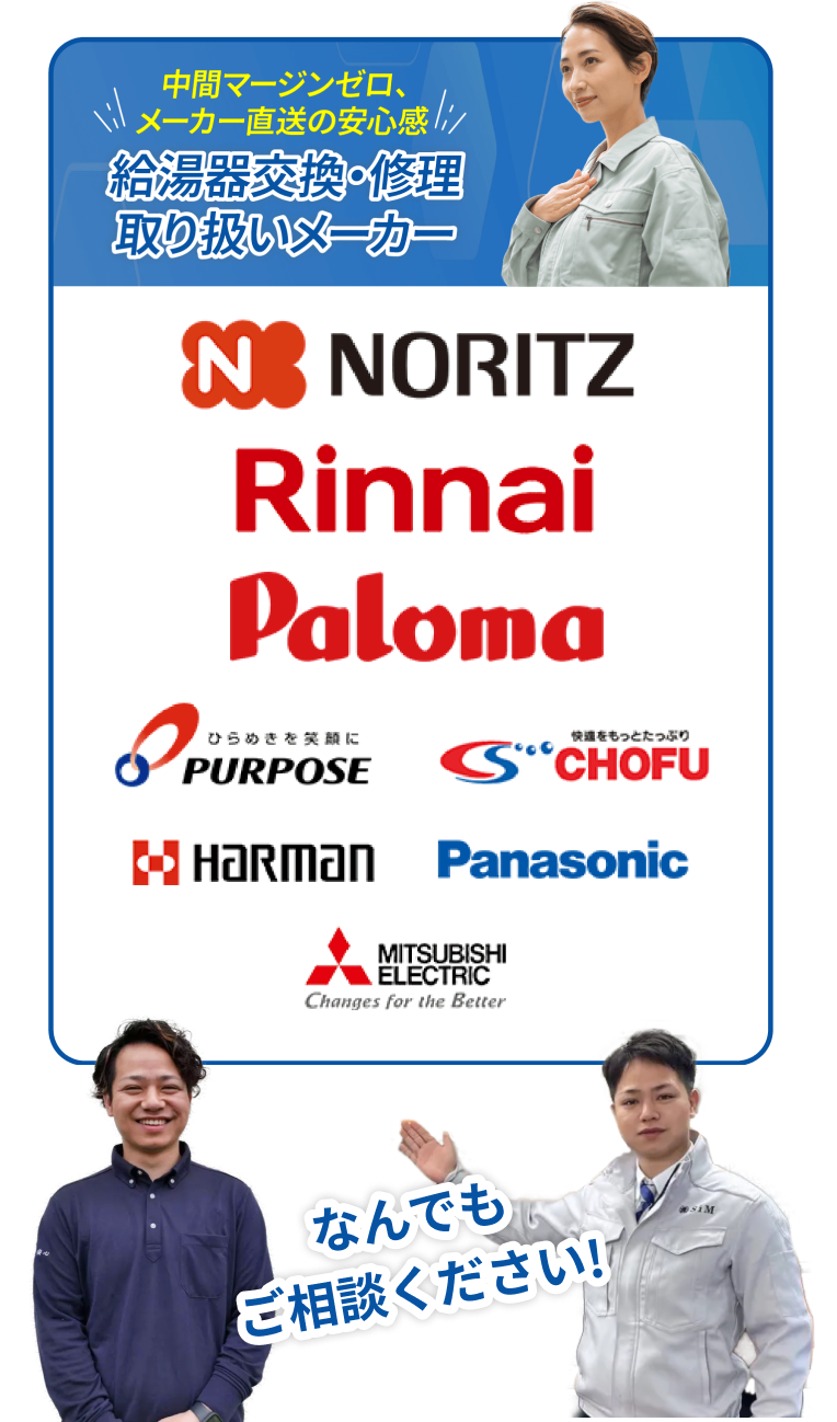 メーカーから直接仕入れ、弊社の専門スタッフが取付を行うので中間マージンが発生せず、格安で給湯器を提供可能です!