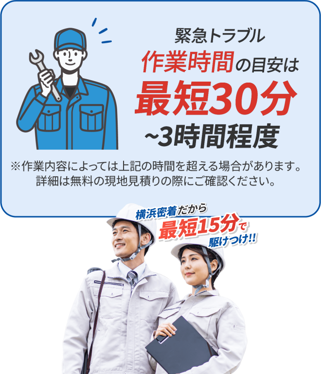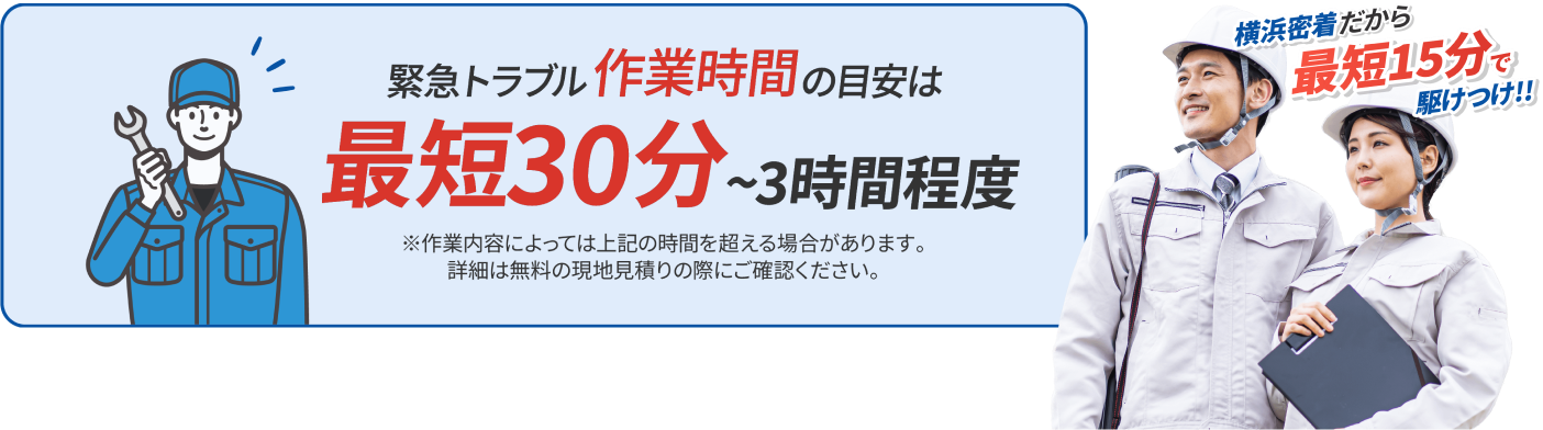 最短15分で修理完了!横浜密着だからこそのスピード対応!急なトラブルでもお任せください。