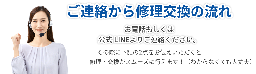 その際に下記の2点をお伝えいただくと修理・交換がスムーズに行えます!(わからなくても大丈夫)