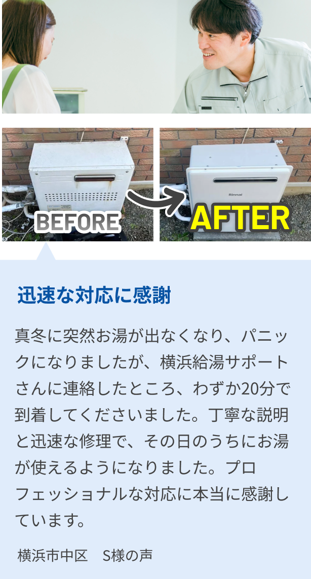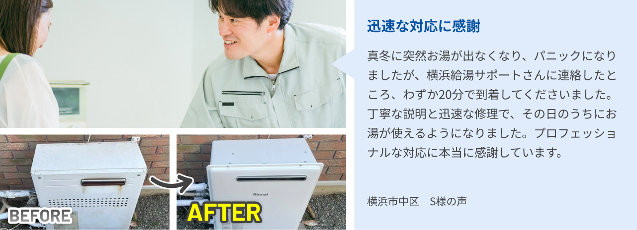 「家設備のプロ」である自社スタッフが、今まで培ってきた経験や実績を引っさげてお客様の家にお伺いし、給湯器のトラブルを解決します!